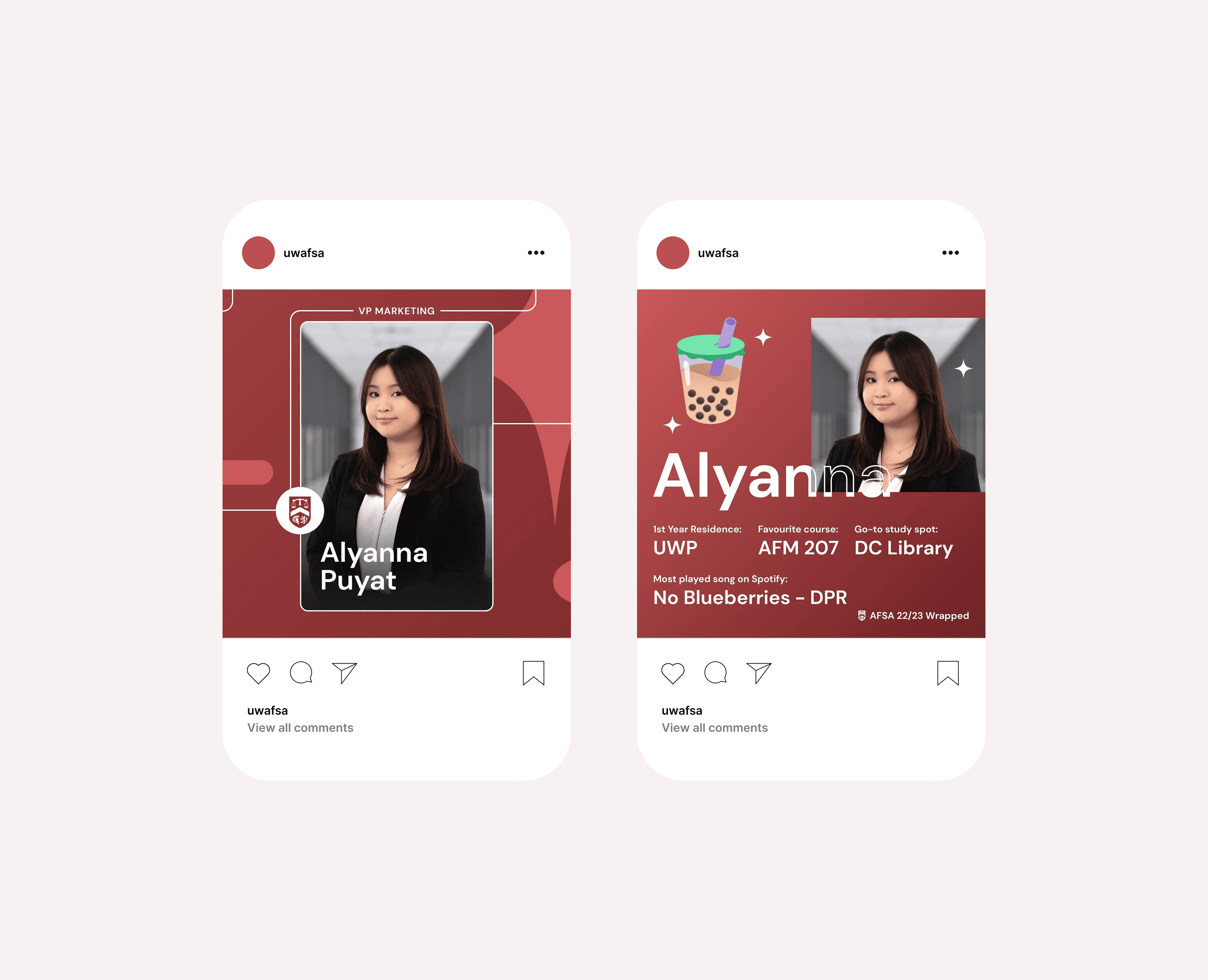 In my first task as the Vice President of Marketing, I was responsible for project managing AFSA's annual executive photoshoot, which involved organizing, planning, and overseeing the graphic design for the President and Vice Presidents of AFSA.