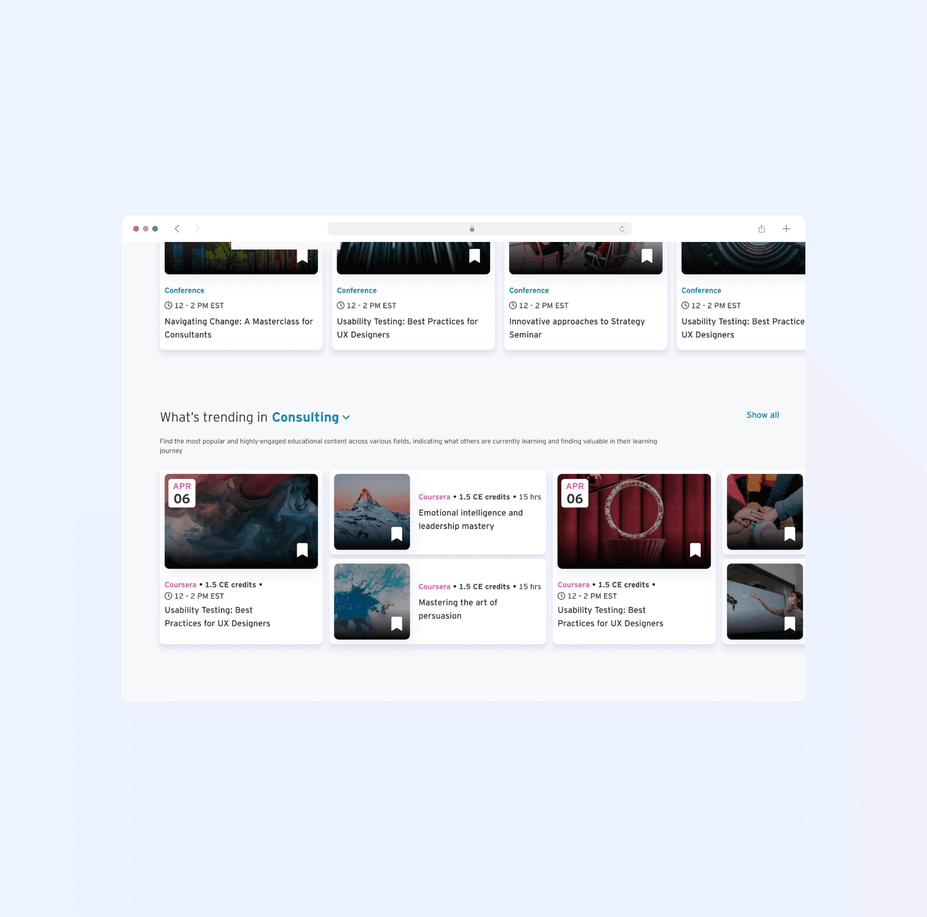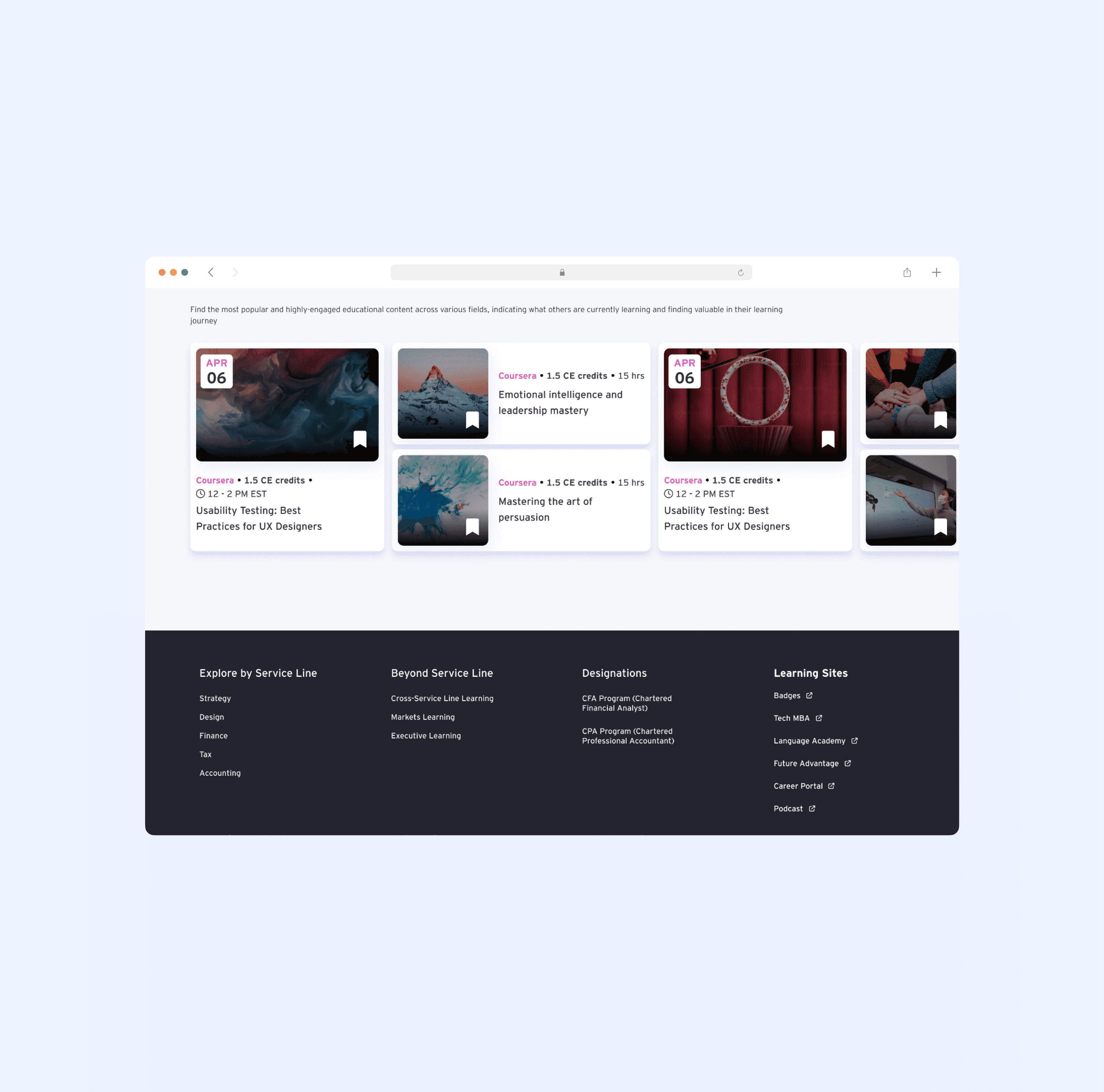 As an intern at EY, I was able to collaborate with the EY Design Studio. I contributed to this project by redesigning pages of a consulting firm's internal website, which aims to be a platform for employees to access external learning resources, career development opportunities, and more.