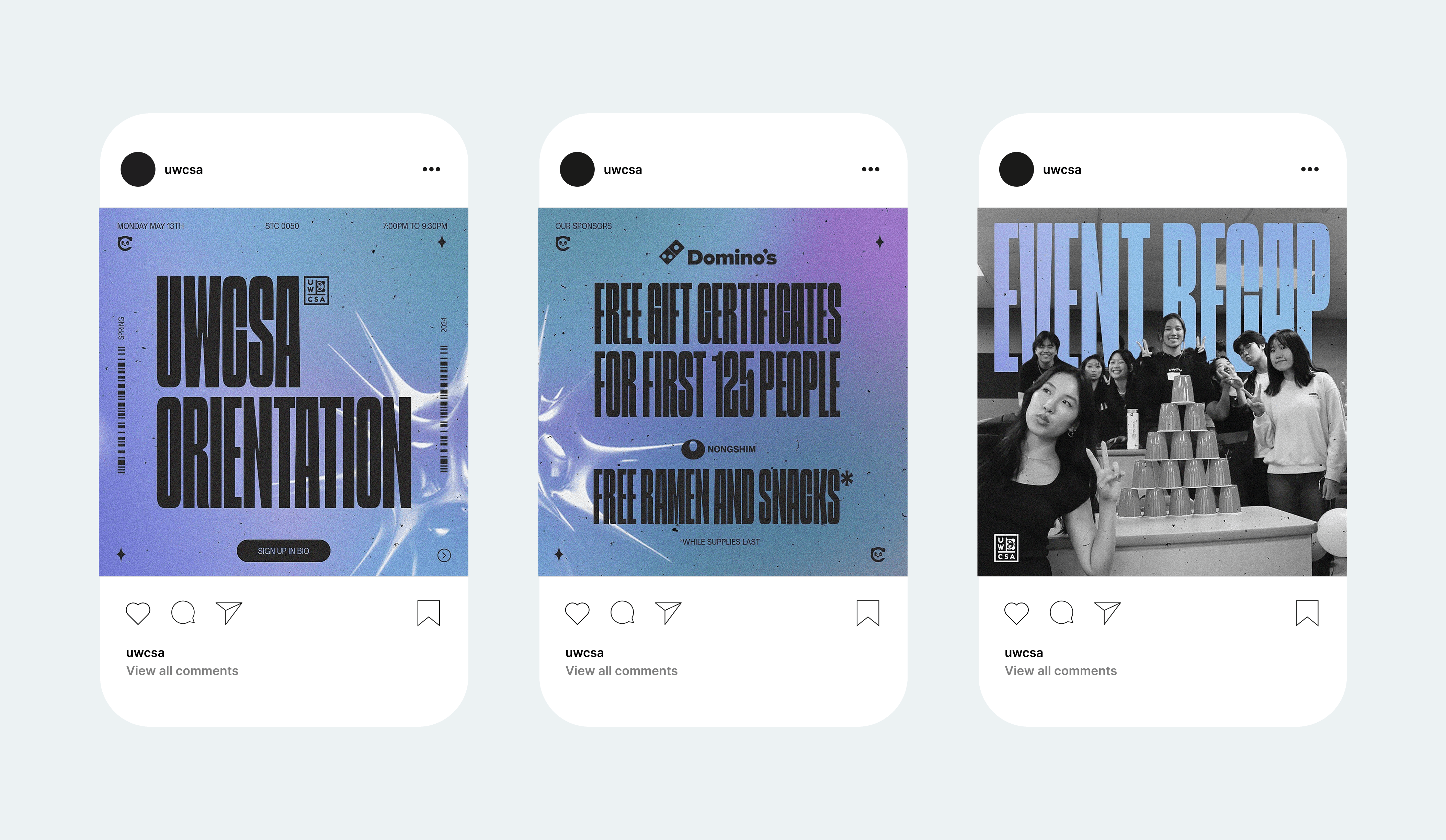 Orientation is an outdoor event hosted by UWCSA to welcome students back after the summer and encourage them to get involved. For this event, UWCSA partnered with Domino’s and Nongshim.