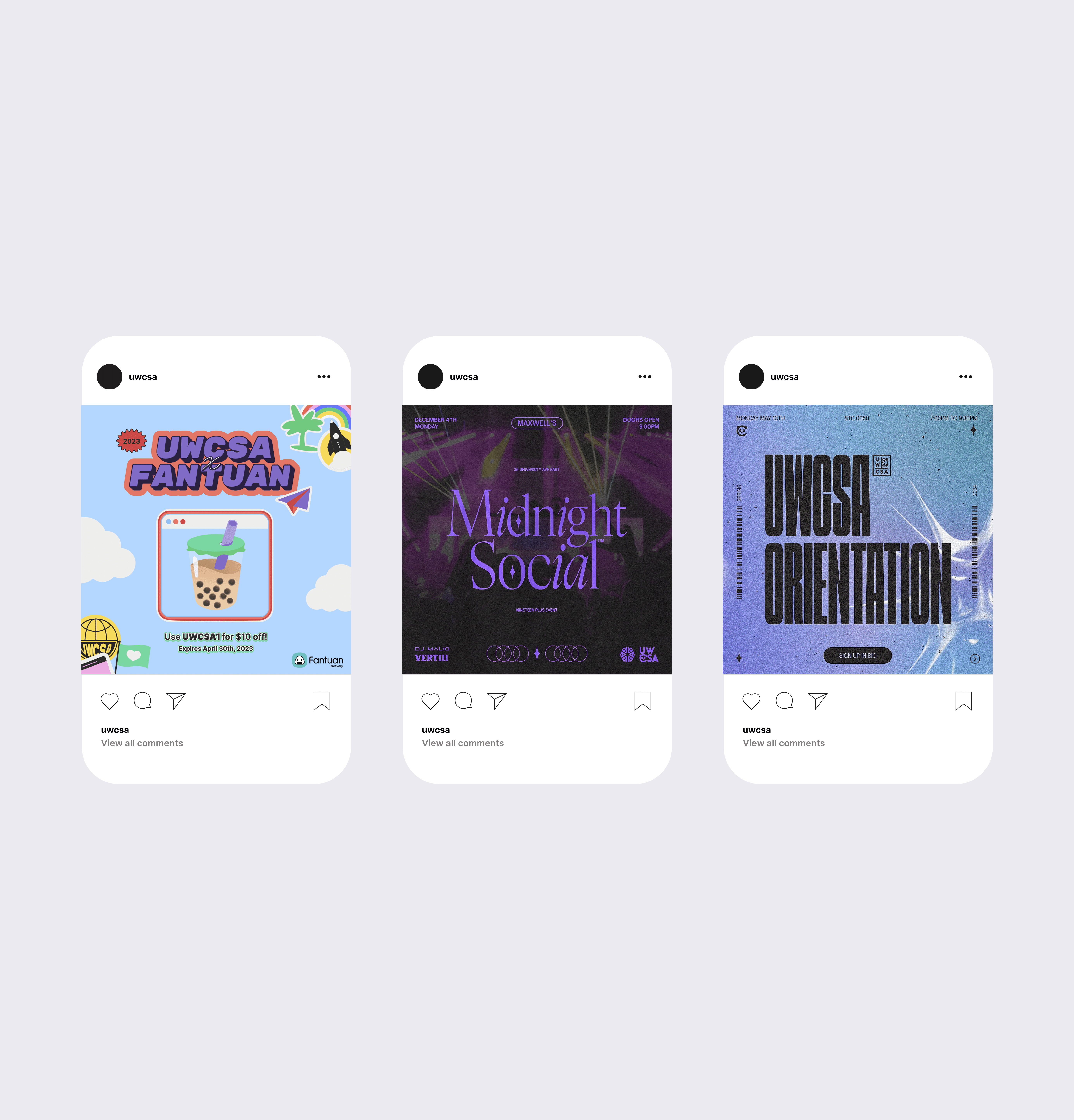 University of Waterloo Chinese Student Association (UWCSA) is the largest cultural club in Ontario, hosting some of the biggest social events in Waterloo while also organizing philanthropic initiatives for students. I held various roles at UWCSA, starting as a Marketing Associate, then Director of Design, and eventually Vice President of Design.
