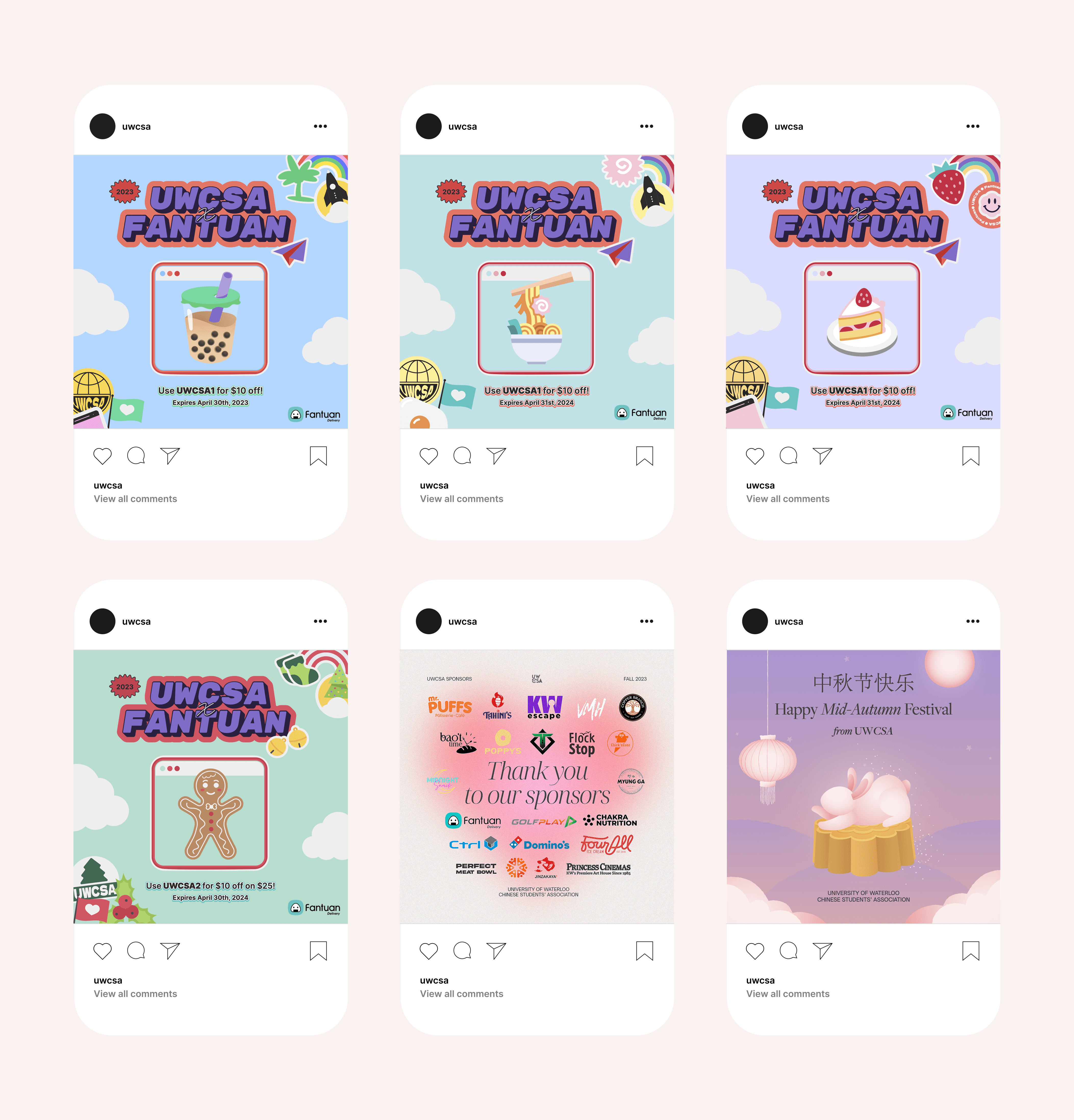 UWCSA collaborates with more sponsors than any other club at the University of Waterloo. Our largest partnership was with Fantuan, an Asian food delivery app, with who we had an exclusive discount code.